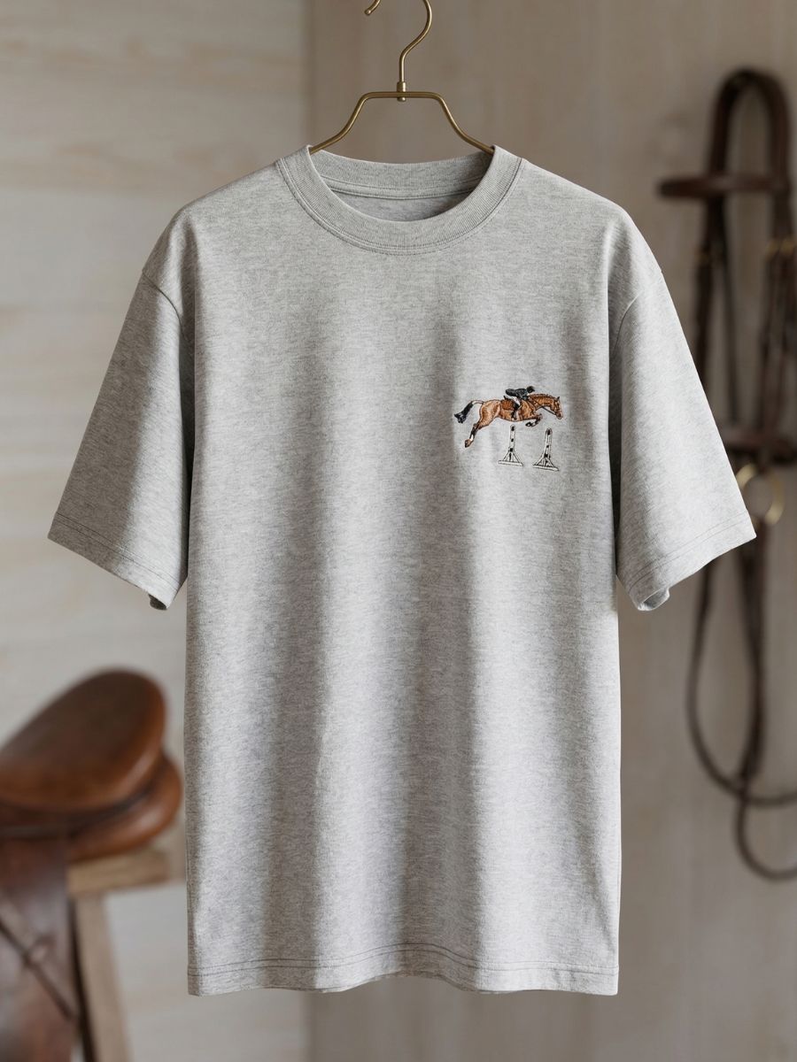 Un t-shirt de compétition équestre américain, brodé à la main — la pièce parfaite pour les amatrices de style équestre authentique.