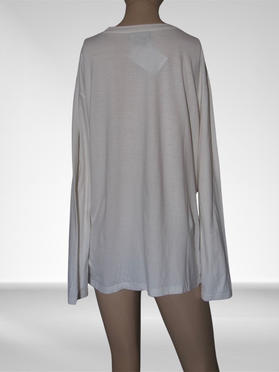 Ce t-shirt blanc Iron Horse arbore un print biker sur le devant, dans la grande tradition des graphiques américains moto et road culture. Iron Horse est une référence dans l’univers du biker vintage — ses t-shirts imprimés sont aujourd’hui des pièces recherchées par les amateurs de style américain authentique. Coupe classique, très bon état de conservation, porté avec un jean ou un pantalon à pince pour un look à la frontière du western et du biker.